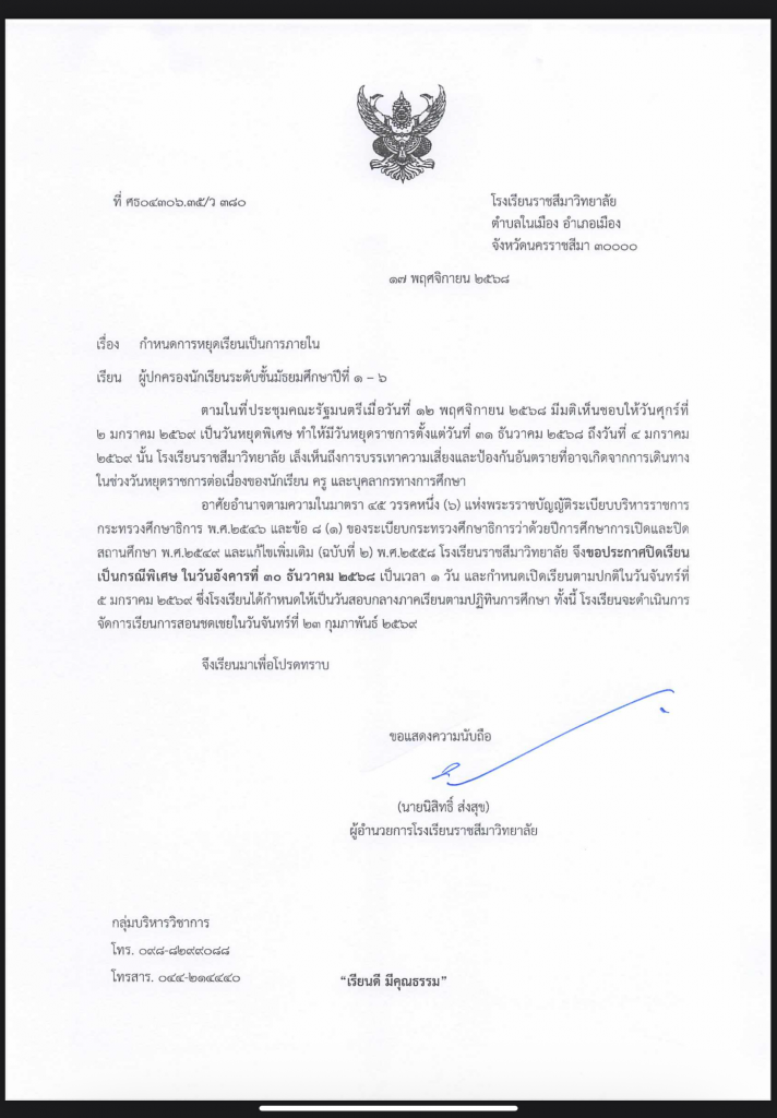 แจ้งกำหนดการหยุดเรียนเป็นการภายใน วชิรวิทย์ วงษ์รักษา 12/17/2025 Continue Reading Previous: ประกาศหยุดเรียนเป็นภายใน Leave a Reply Cancel replyYour email address will not be published. Required fields are marked *Comment * Name * Email * Website Save my name, email, and website in this browser for the next time I comment.