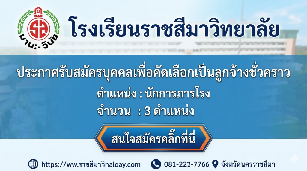 รับสมัครนักการภารโรง 3 ตำแหน่ง วชิรวิทย์ วงษ์รักษา 04/08/2026 Continue Reading Previous: รับสมัครผู้จัดจำหน่ายอาหาร 1 ตำแหน่งNext: ประกาศรับสมัคร ตำแหน่งเจ้าหน้าที่งานวัดผลและเจ้าหน้าที่งานทะเบียน