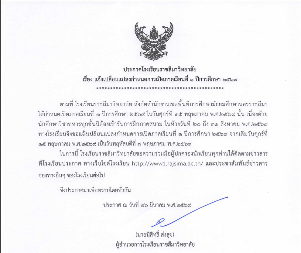 แจ้งเลื่อนเปิดเทอมโรงเรียนราชสีมาวิทยาลัย วชิรวิทย์ วงษ์รักษา 04/22/2026 Continue Reading Previous: ประกาศรับสมัคร ครูอัตราจ้างคณิตศาสตร์